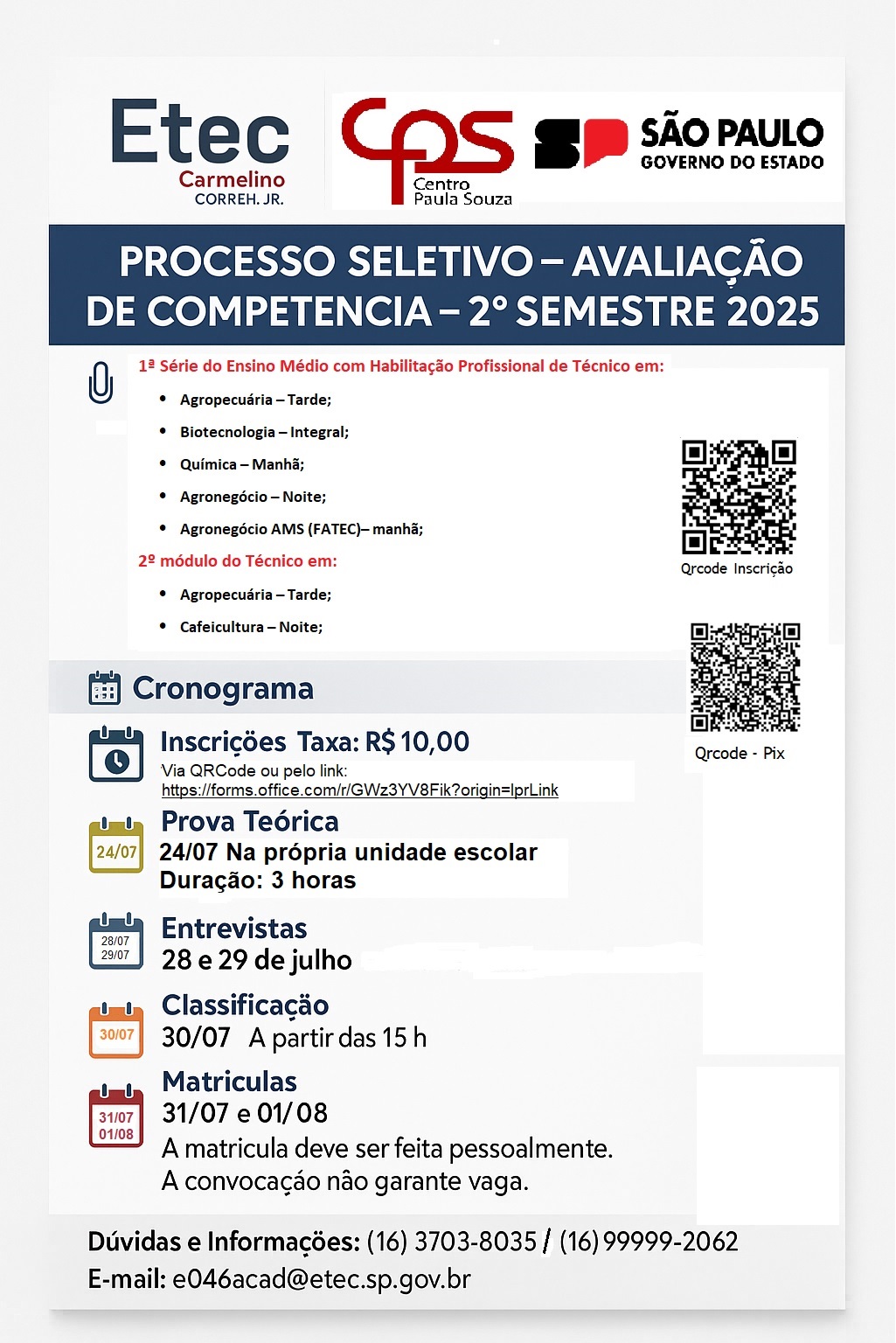 📣 ETEC PROF. CARMELINO CORREA JR. – FRANCA/SP