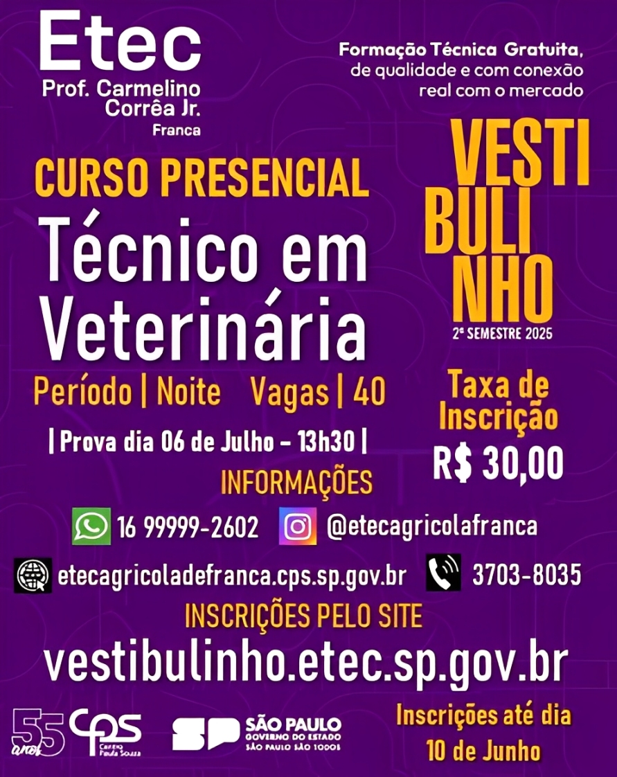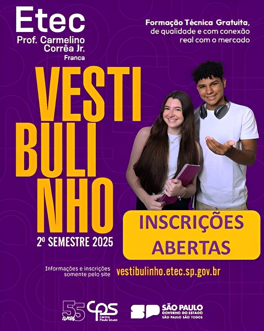 Abertura das inscrição para o Vestibulinho 2ºsemestre de 2025 das ETEC’s.